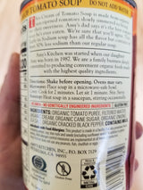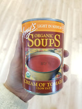 This cream of tomato soup is made from organic sun-ripened tomatoes slowly simmered to bring out their sweetness. Amy's dad says it's the best tomato soup hes ever eaten. We're sure you'll agree. This light in sodium soup has all the flavor but contains at least 50% less sodium than our regular soup.
