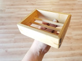 Bamboo soap shelf to keep your soap dry so it will last longer. Bamboo is a sustainable material so you can feel good about that, too! Our dishwashing soap block is perfectly sized to fit inside.