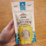 Organic roasted & salted sunflower kernels grown locally in Evansville, Wisconsin.