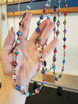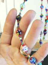 Glass bead necklace made from colorful, fair trade milefiore beads and finished with stainless steel findings. Handmade by Jenny Hoople.