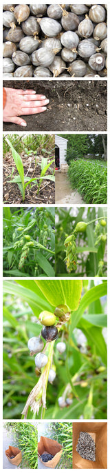 Job Tears are surprisingly easy to grow. A grain plant, like a skinny corn or a robust rye grass, they grow 30-36" high. Drought tolerant and requiring little in the way of nutrients, I've found that it's best not to grow these natural beads in a very fertile vegetable garden space, and that they don't need very much water or looking after. I grow my Job Tears in the little strip of ground between my driveway and the neighbor's! Here's a step-by-step tutorial I wrote for how to grow these natural beads.