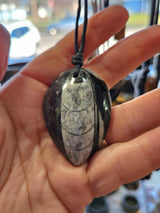 Natural fossil necklace, ethically sourced. Shape and size of pendant varies.