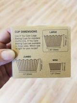 Large baking cups for muffin making that's easy on the environment. FSC (forest service certified), Compostable and Certified Unbleached Totally Chlorine Free. Even the box is 100% recycled paperboard.