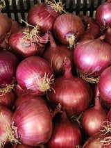 Cured storage onions. Specify yellow (for cooking), red (for fresh eating), blush (good for both) or a mixture. Local pickup only.