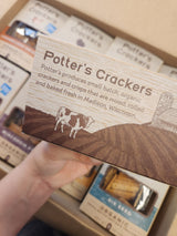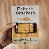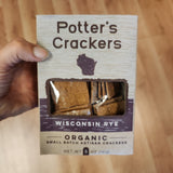 Artisan crackers locally-made from organic and locally-sourced grains and Wisconsin butter. Packaged in recycled packaging.
