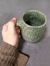 Holding this rustic pottery mug is like holding a tree trunk. A smooth, warm tree trunk full of steaming hot tea. Life is better when you transform your home into a natural refuge from hectic modern life: one lichen green pottery mug at a time.