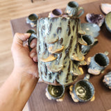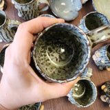 Holding this rustic pottery mug is like holding a tree trunk. A smooth, warm tree trunk full of steaming hot tea. Life is better when you transform your home into a natural refuge from hectic modern life: one lichen green pottery mug at a time.