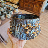 Earth Blue Fungus Pot - handbuilt - one of a kind