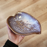 I call these "leaf dishes" because they aren't quite bowls and they're not quite plates. I make these by pressing real hosta leaves into wet clay and then forming the vessel with the leaf prints I make. Perfect for eating a handful of nuts or berries or to sit on your dresser as a catch-all for rings and change. Life is better when you transform your home into a natural refuge from hectic modern life: one friendly leaf dish at a time.