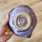 I hand built this stoneware ceramic dish (instead of throwing it on a potter's wheel) which creates it's natural tree trunk texture. I make my pottery this way because this is how I make my ceramic sculptures and because I wanted to make mugs that felt like they had grown into being mugs instead of having been made into mugs.