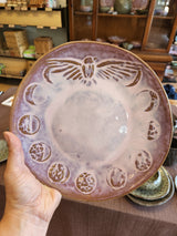 Invite the woodland into your dining room with my original hand carved dinner plates featuring the moon cycle and crow with wings outstretched.  Life is better when you transform your home into a natural refuge from hectic modern life: one lichen green pottery mug at a time.