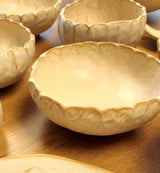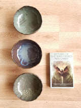 I hand build these stoneware ceramic bowls (instead of throwing them on a potter's wheel) which creates their natural shapes. I make my pottery this way because this is how I make my ceramic sculptures and because I wanted to make plates that felt like they had grown into being pottery instead of having been made into plates.