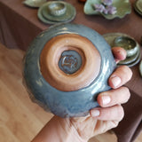 Every bowl is one-of-a-kind and they come in a range of complimentary green and blue colors. If you want to pick out your own perfect bowl, come on in to the shop or else email me, and I will send you a photo of what's in stock right now. Or you could just order one and be pleasantly surprised!